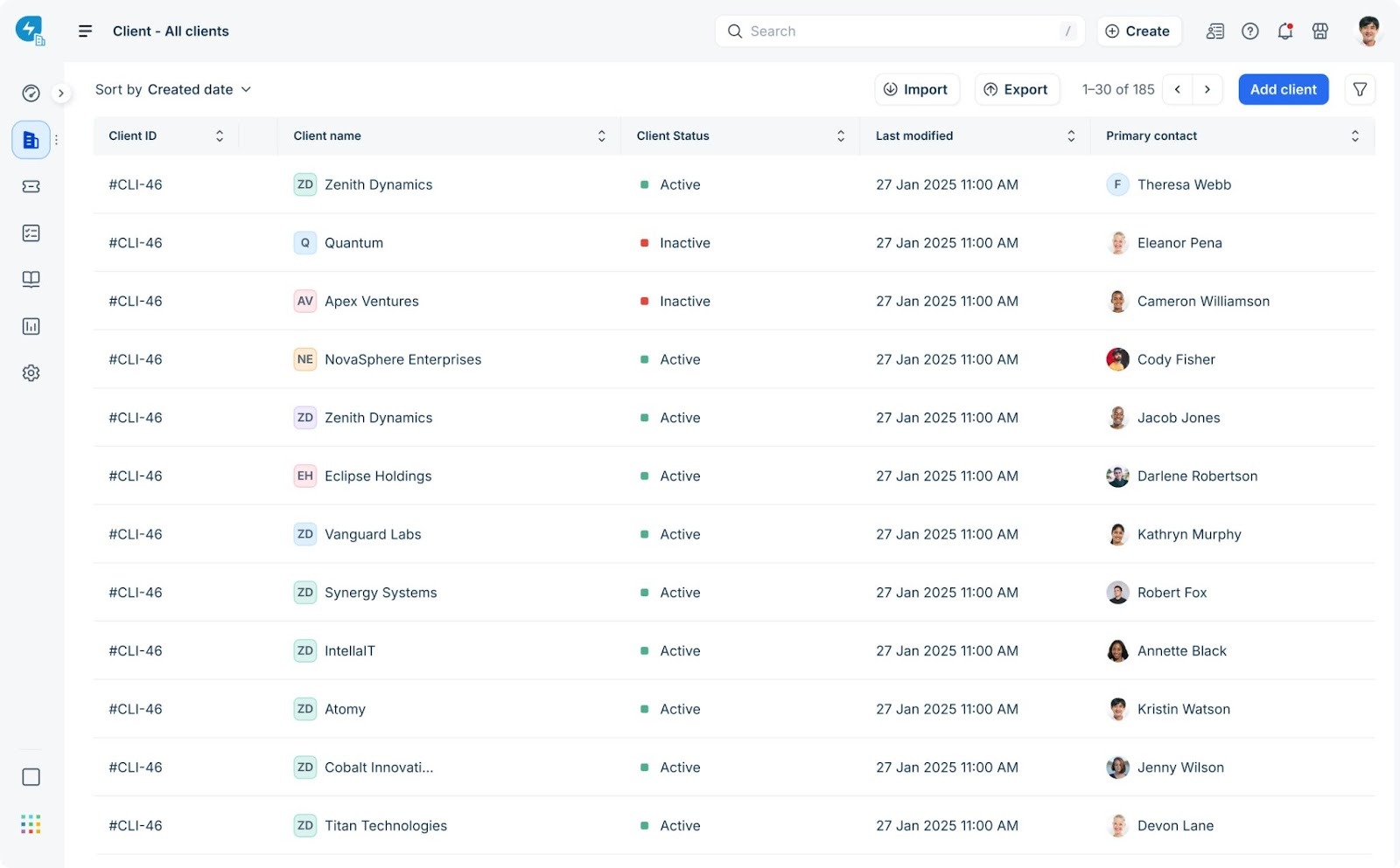- Client list page - A refreshed layout that helps you view and manage client information with clarity.